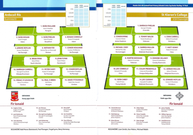 St Kieran’s College captured the Croke Cup for a record 21st time following a 1-15 to 1-13 win over Árdscoil Rís of Limerick in the 2016 All-Ireland Post Primary Schools Final. Click on the 2016 All-Ireland post Primary Schools A Final Match Programme for the more details about the teams.