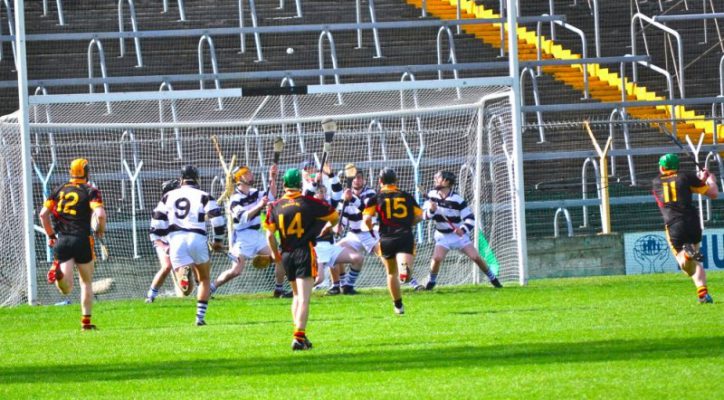 However, Kieran’s had not read the script and with two hundred years of tradition behind them, they produced an amazing three minutes. Cillian Buckley won a puck out, hand passed to the strong running Conor O’Shea who shipped a hard challenge before delivering a ball across the square. Thomas O’ Hanrahan reacted first and lashed the ball to the empty net. Kieran’s a point up, one minute of injury time left. The quick puck out was grabbed by Richie Reid and delivered the sliothar between the posts for Kieran’s to lead by two. There was time for one more play. Ard Scoil applied the pressure and was awarded a twenty one yard free just to the right of the goal. The free was mis hit and squirted across the goal to the safety of the end line. A loud shrill of the whistle and Kieran’s were All Ireland champions for a record eighteenth time.