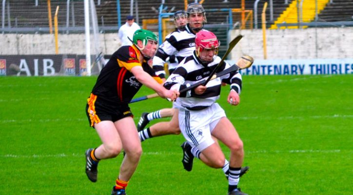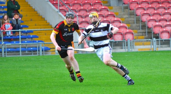 Thurles was the venue, however unlike last year’s fine conditions, the wind blew strongly into the town goal. Kieran’s played against the wind in the first half and got the better of the exchanges. Thomas O’ Hanrahan opened the scoring and looked the most likely to score all day for Kieran’s. Ard Scoil frees kept them in touch as John Power and Tucker picked points for the College. The Kieran’s backs were playing well against the strong wind and Kieran’s had the upper hand, especially William Phelan at full back and Pat O’Carroll at six. Sam Johnston was assured under high ball in goal. Kieran’s first goal put the College in the driving seat. A cross field ball from Diarmuid Cody was caught by Michael Brennan whose quick thinking hand pass put O’Hanrahan through and he finished with aplomb. The College went in at the break two points to the good.